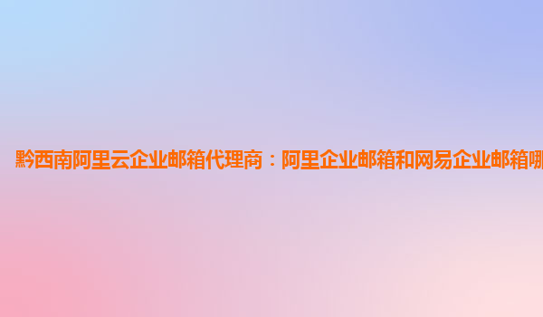 黔西南阿里云企业邮箱代理商:阿里企业邮箱和网易企业邮箱哪个更好用