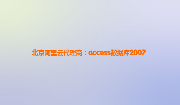 作为一家位于北京的阿里云代理商,我们深入研究了Access数据库2007的优势,并将在本文中向您进行详细介绍。