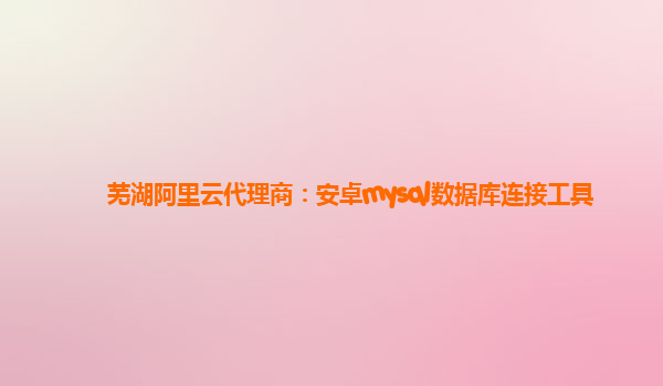 芜湖阿里云代理商:安卓mysql数据库连接工具