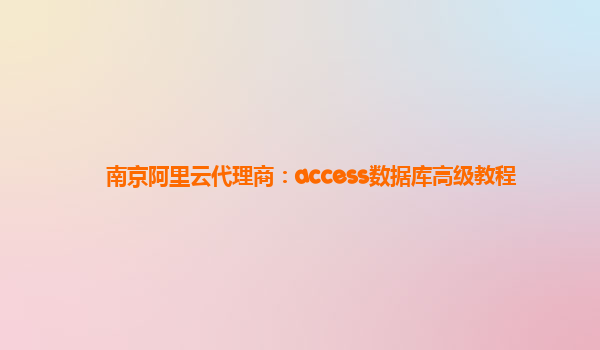 南京阿里云代理商:Access数据库高级教程