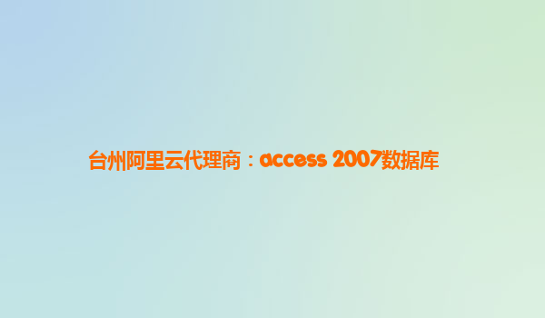 台州阿里云代理商:Access 2007数据库优势分析