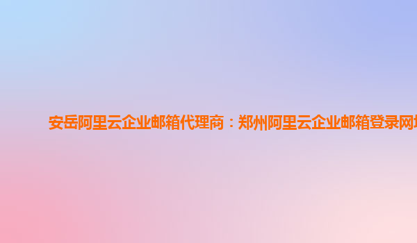 安岳阿里云企业邮箱代理商:郑州阿里云企业邮箱登录网址