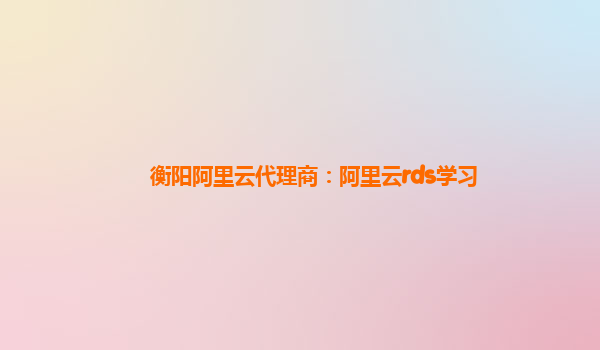 衡阳阿里云代理商:阿里云rds学习