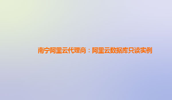 南宁阿里云代理商:阿里云数据库只读实例