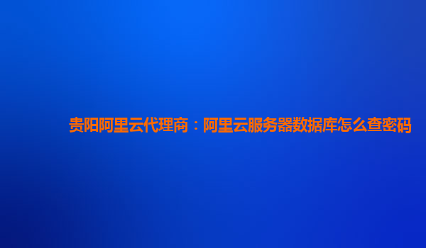 贵阳阿里云代理商:阿里云服务器数据库怎么查密码
