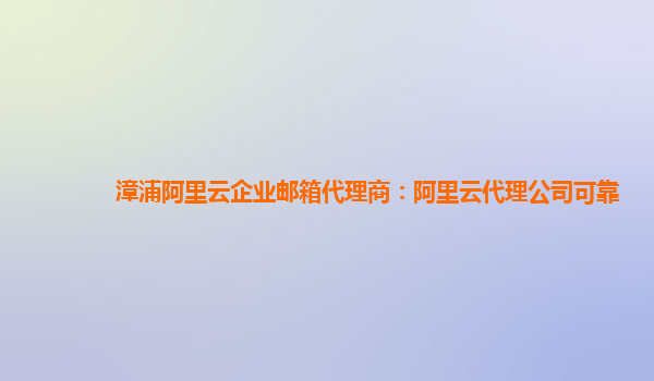 漳浦阿里云企业邮箱代理商:阿里云代理公司可靠