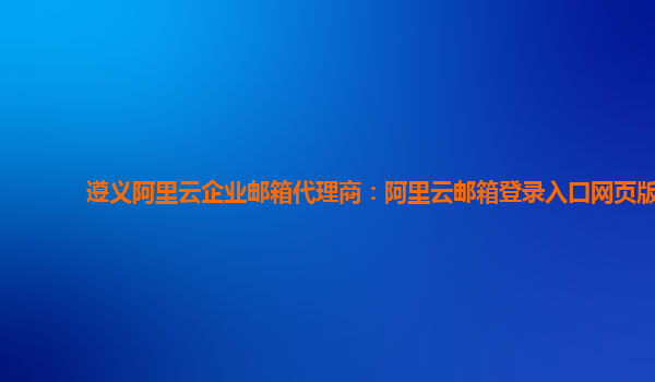 遵义阿里云企业邮箱代理商:阿里云邮箱登录入口网页版