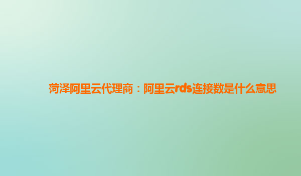 菏泽阿里云代理商:阿里云rds连接数是什么意思