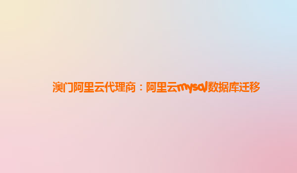澳门阿里云代理商:阿里云MySQL数据库迁移