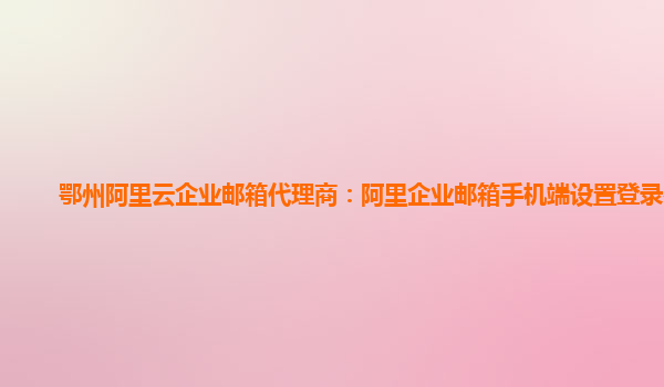 鄂州阿里云企业邮箱代理商:阿里企业邮箱手机端设置登录密码