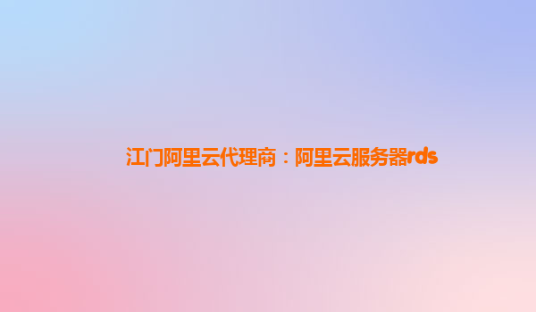 江门阿里云代理商:阿里云服务器RDS