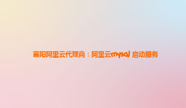襄阳阿里云代理商:阿里云MySQL启动服务