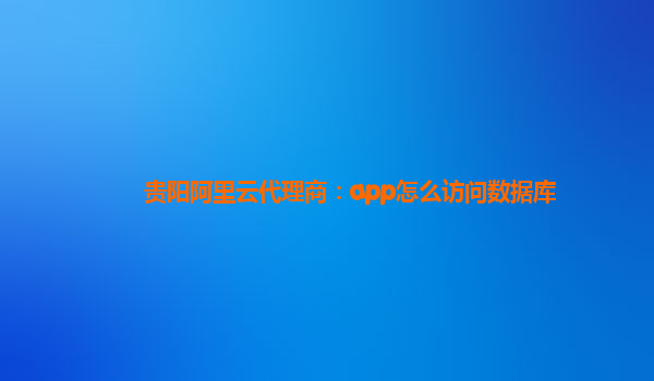 作为贵阳地区的阿里云代理商,我们将为您介绍如何在app中访问数据库。阿里云作为国内领先的云计算服务提供商,具有以下优势: