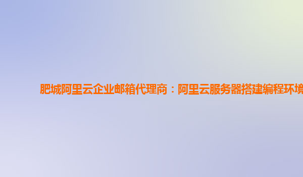 肥城阿里云企业邮箱代理商:阿里云服务器搭建编程环境