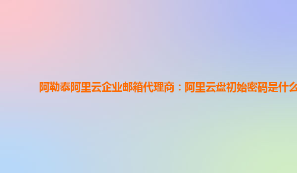 阿勒泰阿里云企业邮箱代理商:阿里云盘初始密码是什么