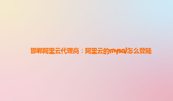 阿里云的mysql怎么登陆及其优势