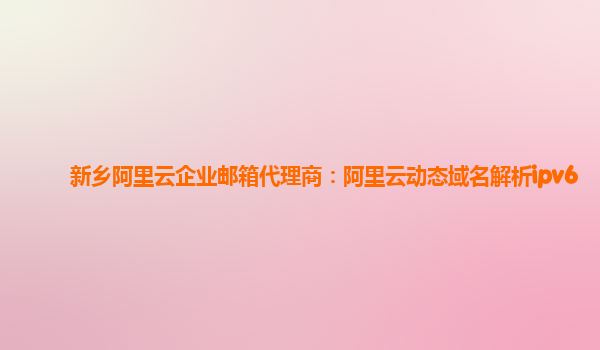 阿里云企业邮箱代理商:阿里云动态域名解析ipv6