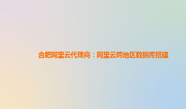 合肥阿里云代理商:阿里云跨地区数据库搭建