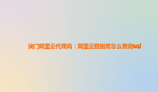 澳门阿里云代理商:阿里云数据库怎么查询sql