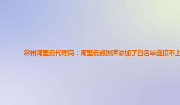 常州阿里云代理商:阿里云数据库添加了白名单连接不上