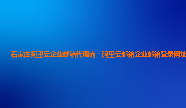 石家庄阿里云企业邮箱代理商:阿里云邮箱企业邮箱登录网址