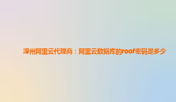 漳州阿里云代理商:阿里云数据库root密码设置及优势分析
