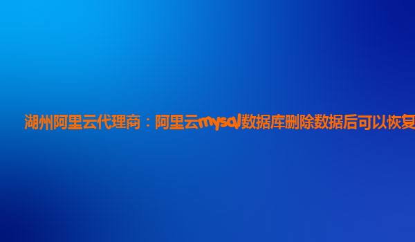 湖州阿里云代理商:阿里云mysql数据库删除数据后可以恢复么