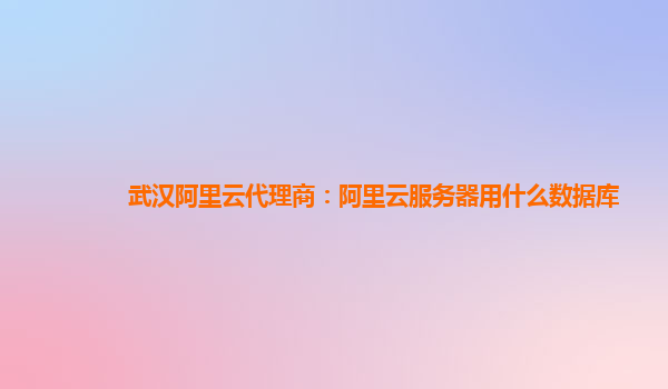 武汉阿里云代理商:阿里云服务器用什么数据库