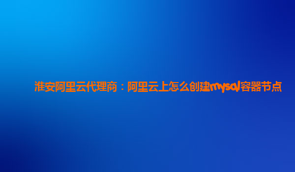 淮安阿里云代理商:阿里云上怎么创建mysql容器节点