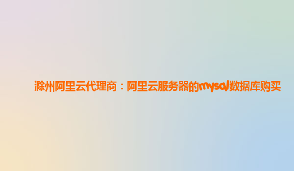 滁州阿里云代理商:阿里云服务器的mysql数据库购买