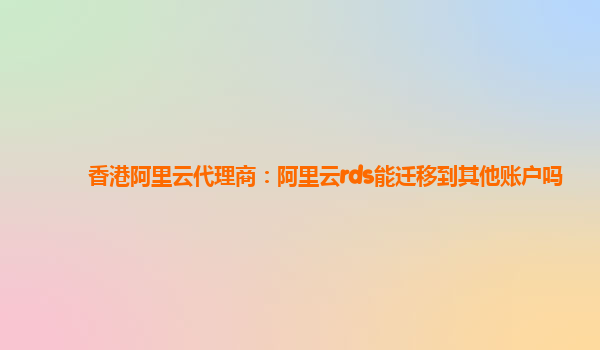 香港阿里云代理商:阿里云rds能迁移到其他账户吗