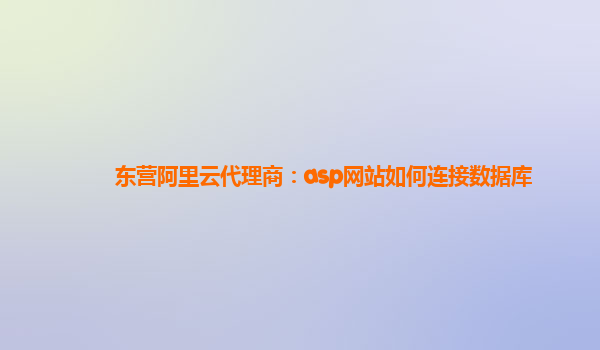 通过与东营阿里云代理商合作,连接ASP网站和数据库变得更加简单顺畅。我们提供专业的技术支持和优质的服务,帮助客户实现稳定可靠的网站运行。欢迎联系我们,获取更多关于ASP网站和数据库连接的咨询和支持。
