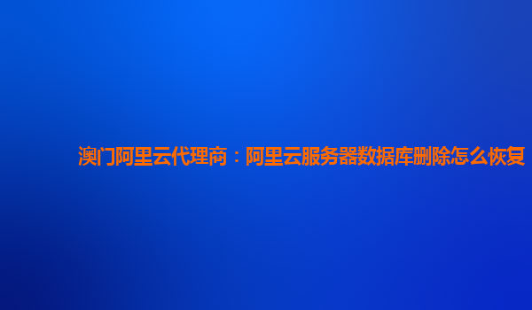 澳门阿里云代理商:阿里云服务器数据库删除怎么恢复