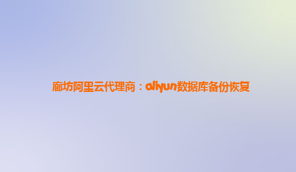 廊坊阿里云代理商:Aliyun数据库备份恢复