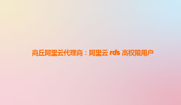 商丘阿里云代理商:阿里云 RDS 高权限用户