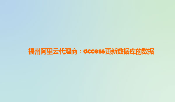 福州阿里云代理商:利用access更新数据库的数据