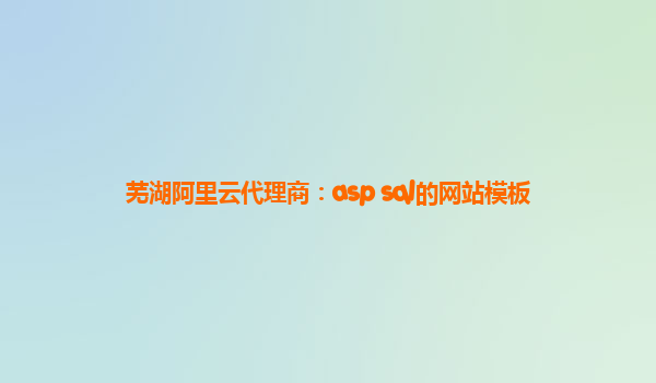 作为芜湖地区的阿里云代理商,我们致力于为客户提供优质的asp+sql网站模板服务。结合阿里云强大的云计算平台,我们可以确保网站的稳定性、安全性和高性能,为客户带来更好的体验和效果。我们期待与您合作,共同打造出完美的网站解决方案。