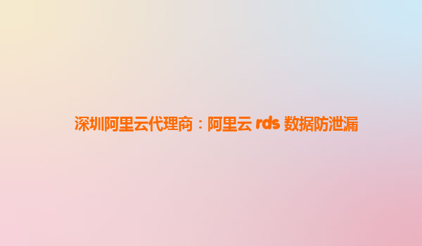 深圳阿里云代理商:阿里云 RDS 数据防泄漏
