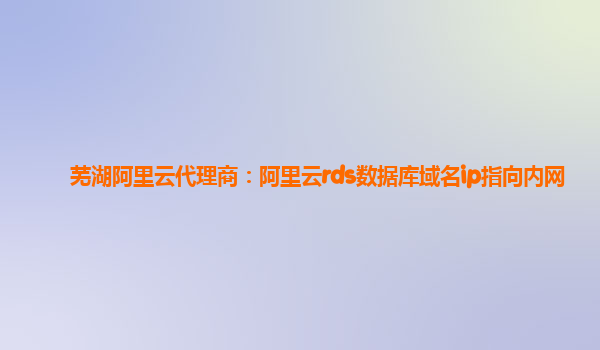 芜湖阿里云代理商:阿里云rds数据库域名ip指向内网