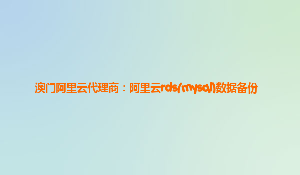 澳门阿里云代理商:阿里云RDS(MySQL)数据备份