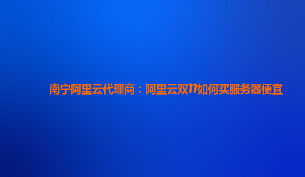南宁阿里云代理商:阿里云双11如何买服务器便宜
