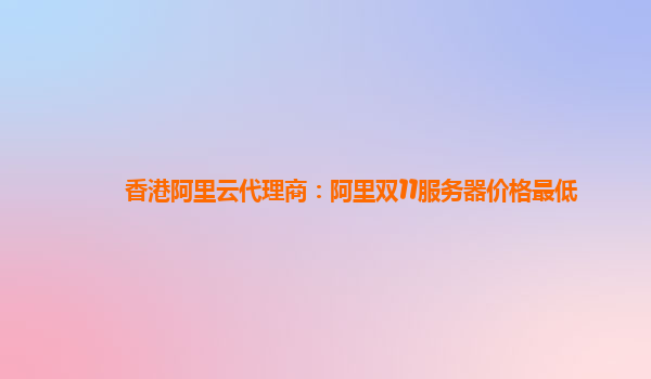 香港阿里云代理商:阿里双11服务器价格最低