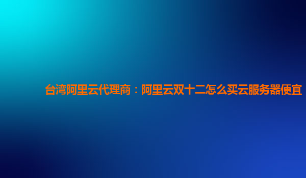 台湾阿里云代理商:阿里云双十二怎么买云服务器便宜
