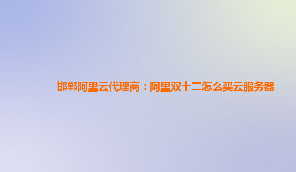 邯郸阿里云代理商:阿里双十二怎么买云服务器