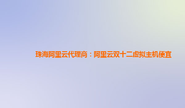 珠海阿里云代理商:阿里云双十二虚拟主机便宜