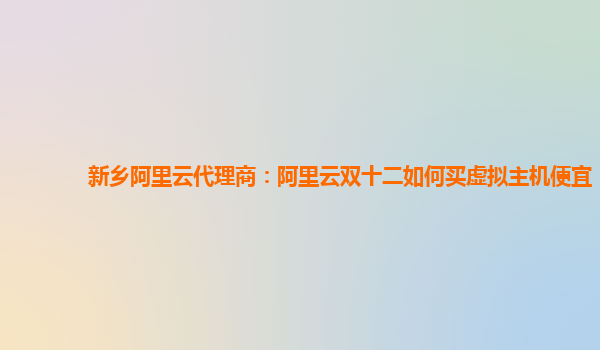 新乡阿里云代理商:阿里云双十二如何买虚拟主机便宜