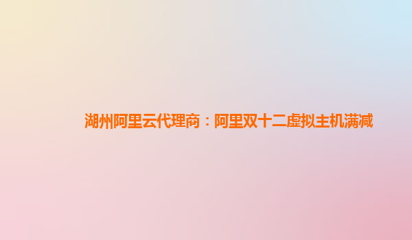 湖州阿里云代理商:阿里双十二虚拟主机满减