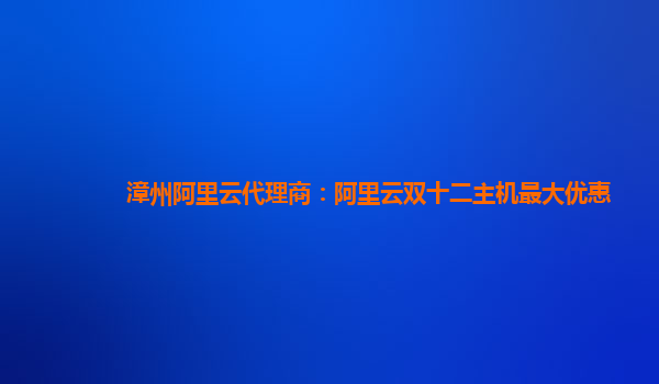 漳州阿里云代理商:阿里云双十二主机最大优惠