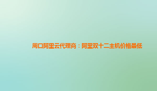 周口阿里云代理商:阿里双十二主机价格最低