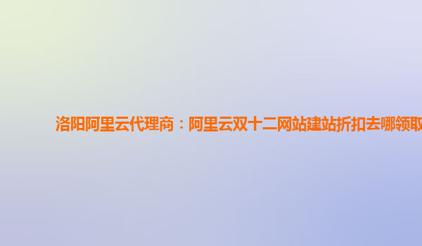 洛阳阿里云代理商:阿里云双十二网站建站折扣去哪领取